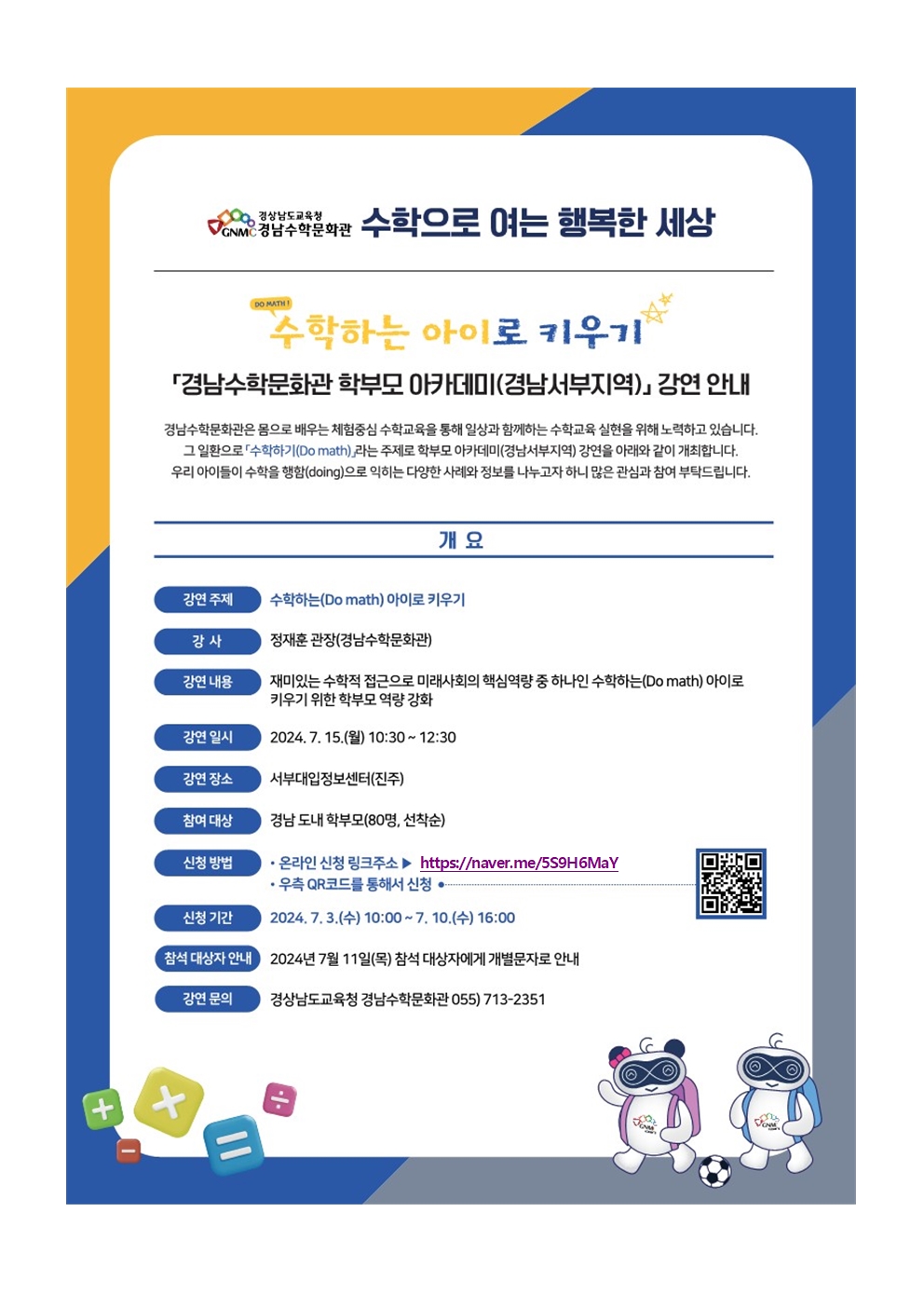 2024. 경남수학문화관 학부모 아카데미 강연 안내